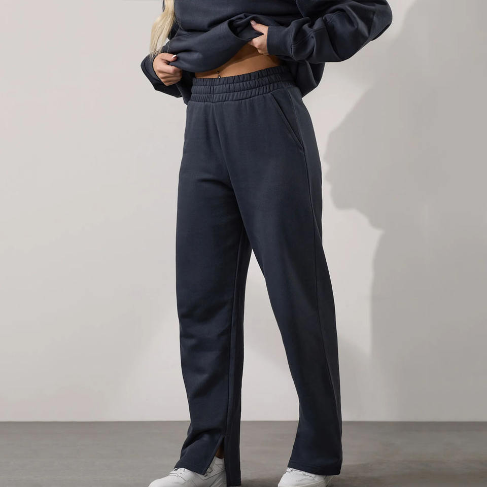 กางเกงวอร์มผ้าคอตตอนผสมผ้านุ่มสำหรับผู้หญิงกางเกงวิ่งผ้าขนแกะขาตรงสีน้ำเงินเข้มกางเกงและกางเกงขายาวสำหรับผู้หญิง