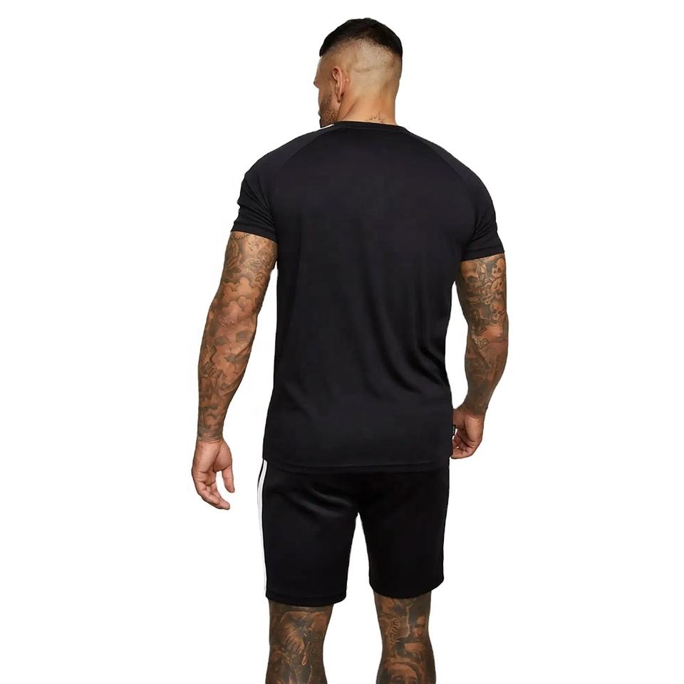 ชุดสองชิ้นสำหรับผู้ชายชุดแบบลำลองและสปอร์ตสีดำคอลโลคอร์ดแบบสปอร์ตพร้อมยี่ห้อและรายละเอียดลายทางที่กำหนดเองสำหรับฤดูร้อน