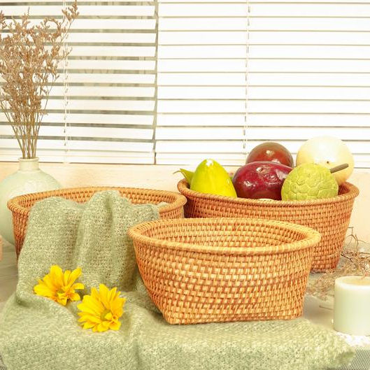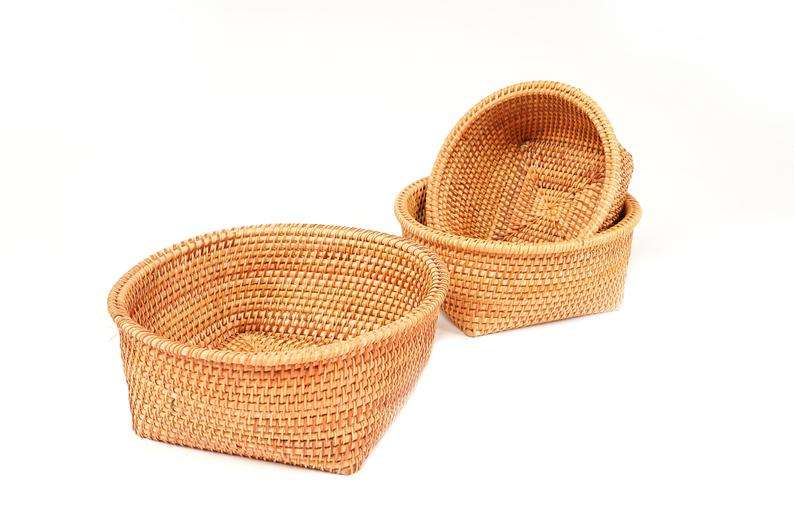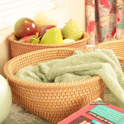 ตะกร้าหวายสานมืองานฝีมือแนววินเทจตะกร้าเก็บของ2025ห้องครัว