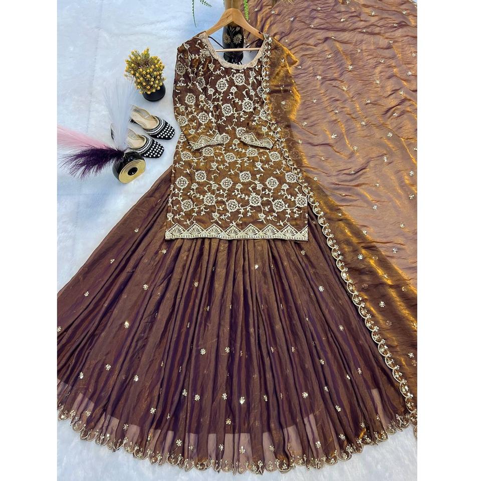 ชุดเลเฮนกาโชลีสำหรับผู้หญิง ดีไซน์เนอร์แบรนด์ดัง ผ้าไหมแฟนดี้ปักลายอย่างดี เหมาะสำหรับงานแต่งงานและงานเลี้ยง มีจำหน่ายแล้วในราคาที่ดีที่สุด TENNECY