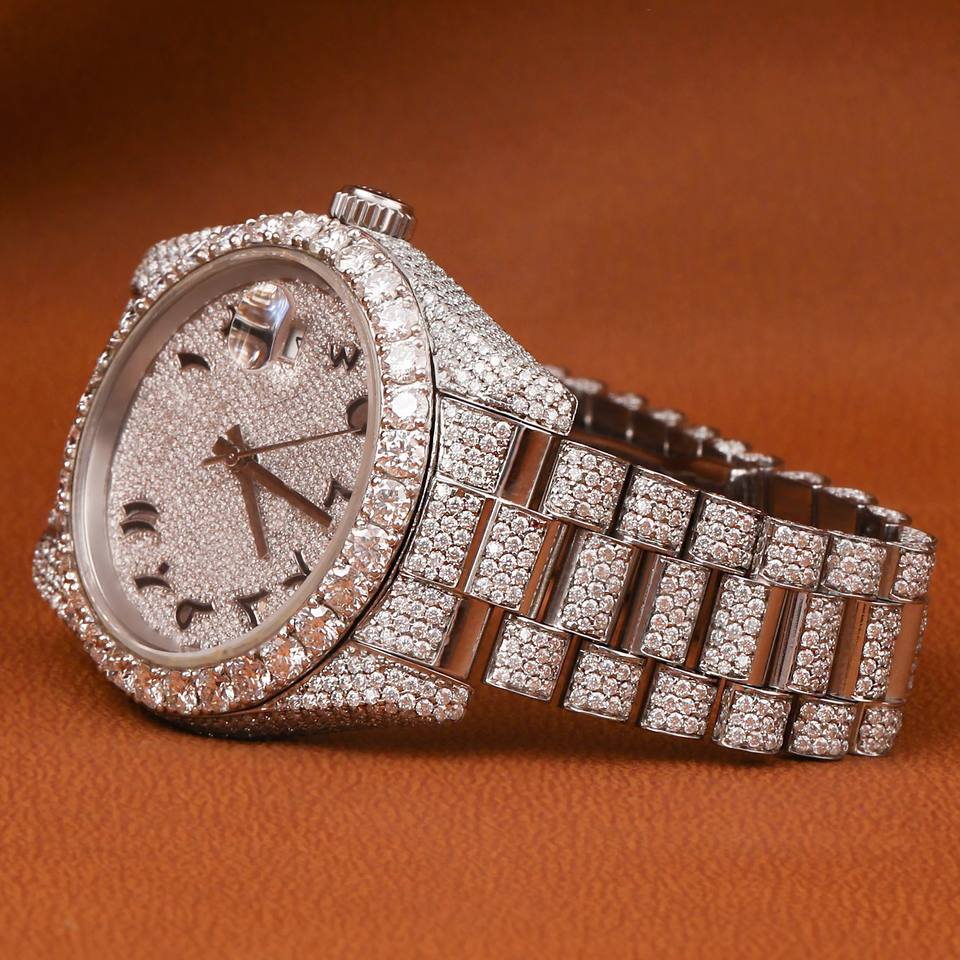 นาฬิกาควอตซ์จักรกลสำหรับผู้หญิง ยอดนิยม ดีไซน์หรูหรา ชุบทอง ประดับเพชรโมอิสซาไนต์ VVS หน้าปัดทรงกลมสีขาว ดีไซน์ทันสมัย