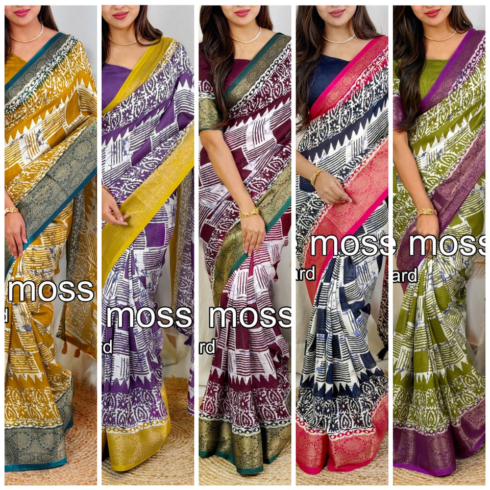 High-Demanded Multicolor Kalamkari Printed Saree with Pallu Zari Weaving Border Georgette Moss for Festive Parties