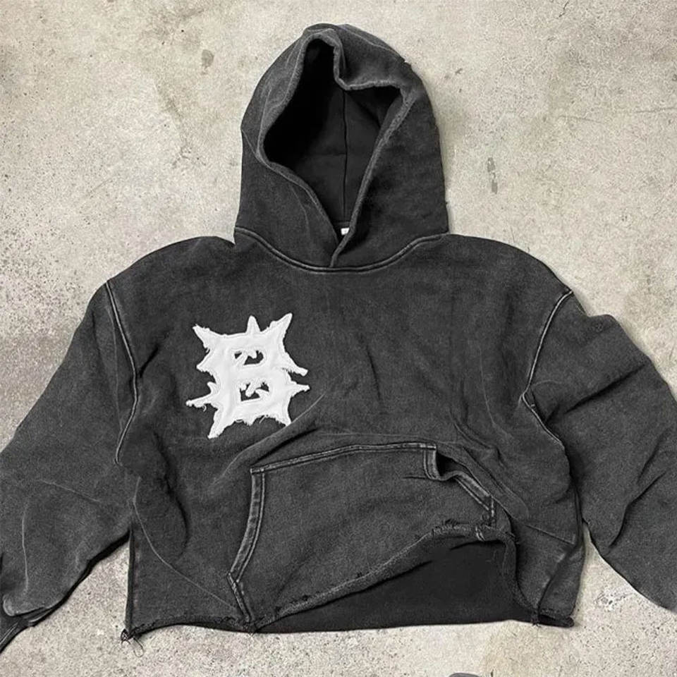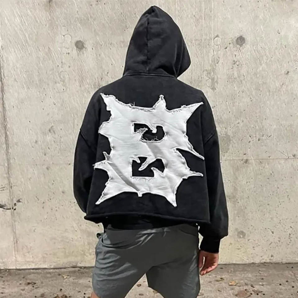ชื่อผลิตภัณฑ์:เสื้อฮู้ดแพทช์ทุกข์ผู้ชาย