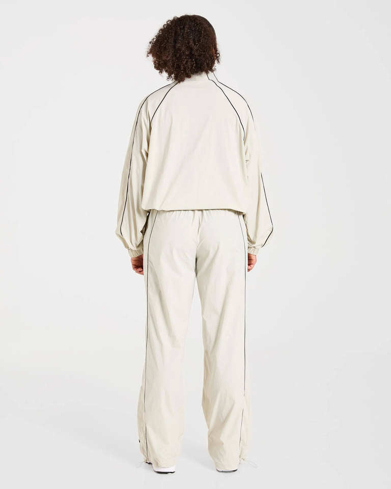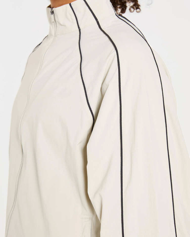 ชุดวอร์มผู้หญิงสีขาวแบบสั่งทำพิเศษ พร้อมเสื้อแจ็คเก็ตและกางเกงวอร์มตัดเย็บด้วยผ้าตัดต่อสี น้ำหนักเบา เหมาะสำหรับการวิ่งออกกำลังกาย