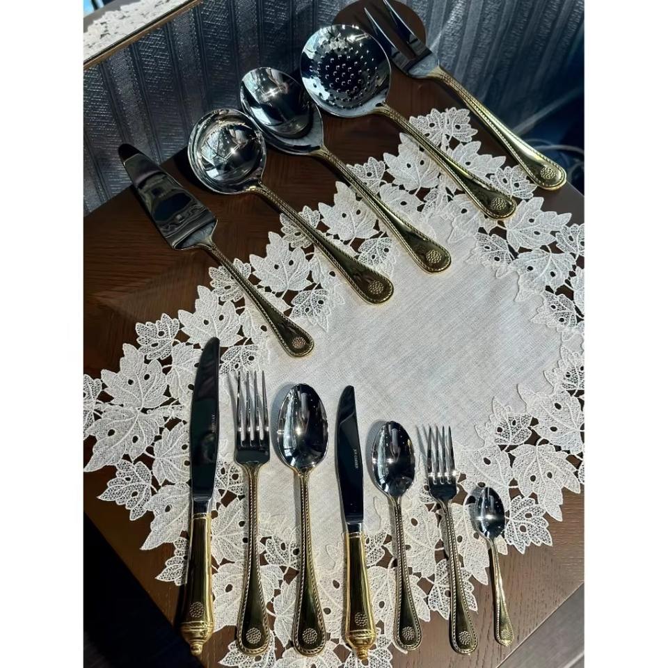 ชุดช้อนส้อมสแตนเลสคุณภาพพรีเมียม เป็นมิตรกับสิ่งแวดล้อม สำหรับโรงแรมและครัวเรือน อุปกรณ์ครัวสำหรับงานเลี้ยง สามารถปรับแต่งสีได้