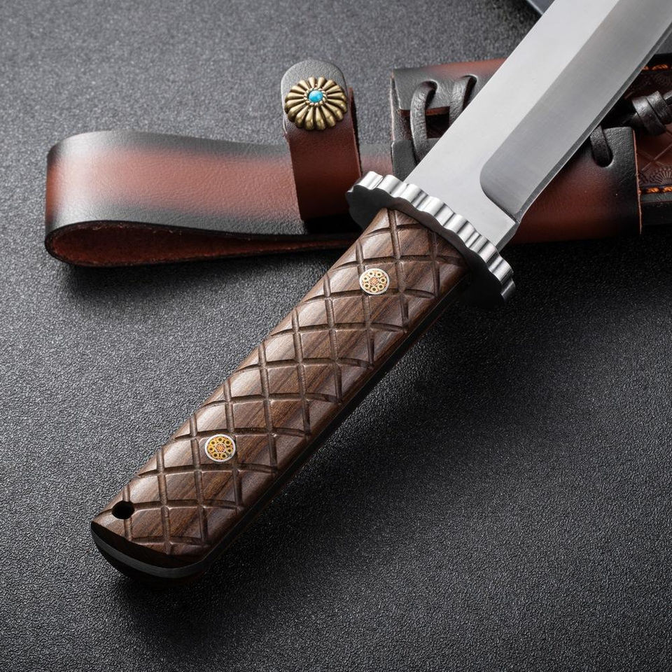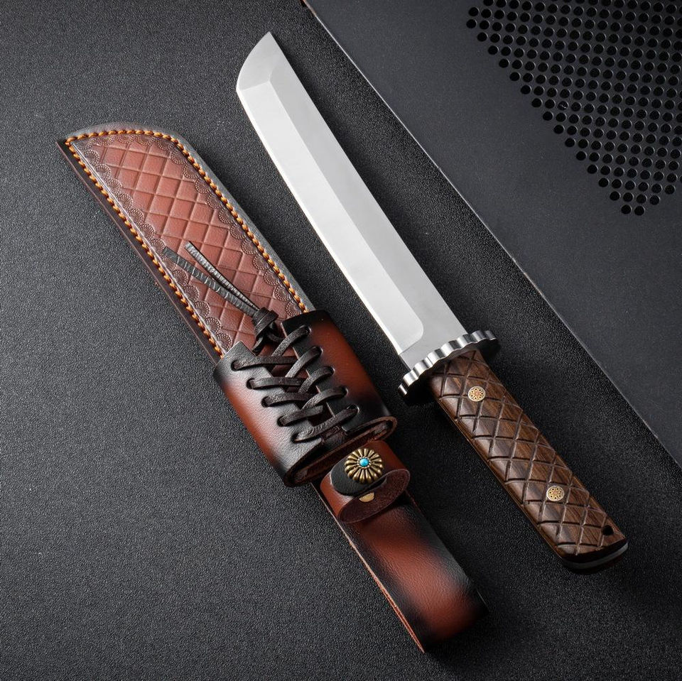 มีดใบตายแบบ Tanto ที่เป็นที่ต้องการสูง | มีดเอาตัวรอดกลางแจ้งแบบฟูลแทงค์ พร้อมด้ามจับลายพิเศษและปลอกหนัง ราคาประหยัด