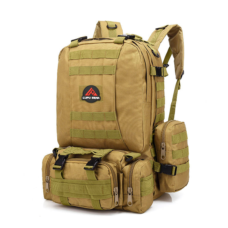 900D อ๊อกซฟอร์ดความหนาแน่นสูงกันน้ำสีกากีกระเป๋าเป้สะพายหลังยุทธวิธีผ้าโพลีเอสเตอร์บุด้านในมีซิปปิดสำหรับกีฬากลางแจ้ง