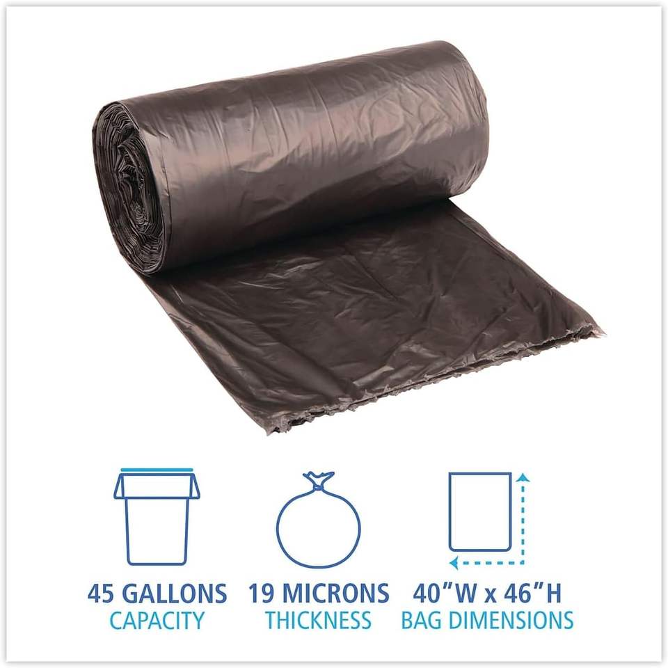 ถุงขยะดำแบบหนาพิเศษ ขนาด 40x46 นิ้ว ความจุ 40-45 แกลลอน หนา 19 ไมครอน บรรจุ 25 ถุงต่อม้วน 6 ม้วนต่อกล่อง