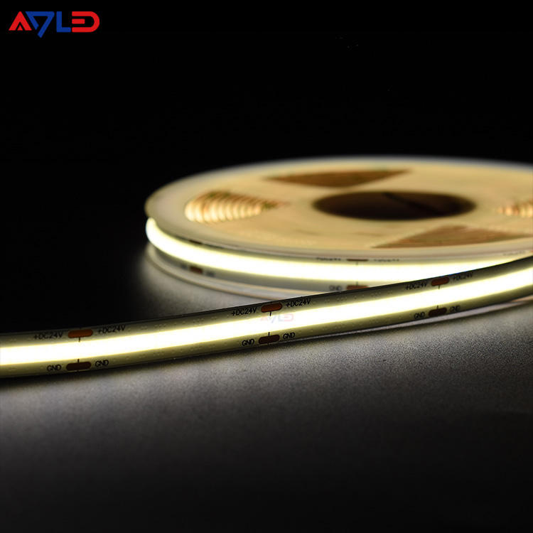 ไฟแถบ LED ความหนาแน่นสูง แบบยืดหยุ่น 12V 24V 528 LEDs กันน้ำ IP65/IP67 COB พร้อมปลั๊กเชื่อมต่อ CRI90 ปรับความสว่างได้
