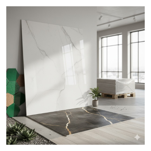กระเบื้องพอร์ซเลนเคลือบเงาความหนาแน่นสูง (GVT/PGVT) 9 มม. (สำหรับภายใน) / 20 มม. (สำหรับปูพื้นภายนอก) 600x600 มม. (60x60 ซม.) 600x1200 มม. (60x120 ซม.)