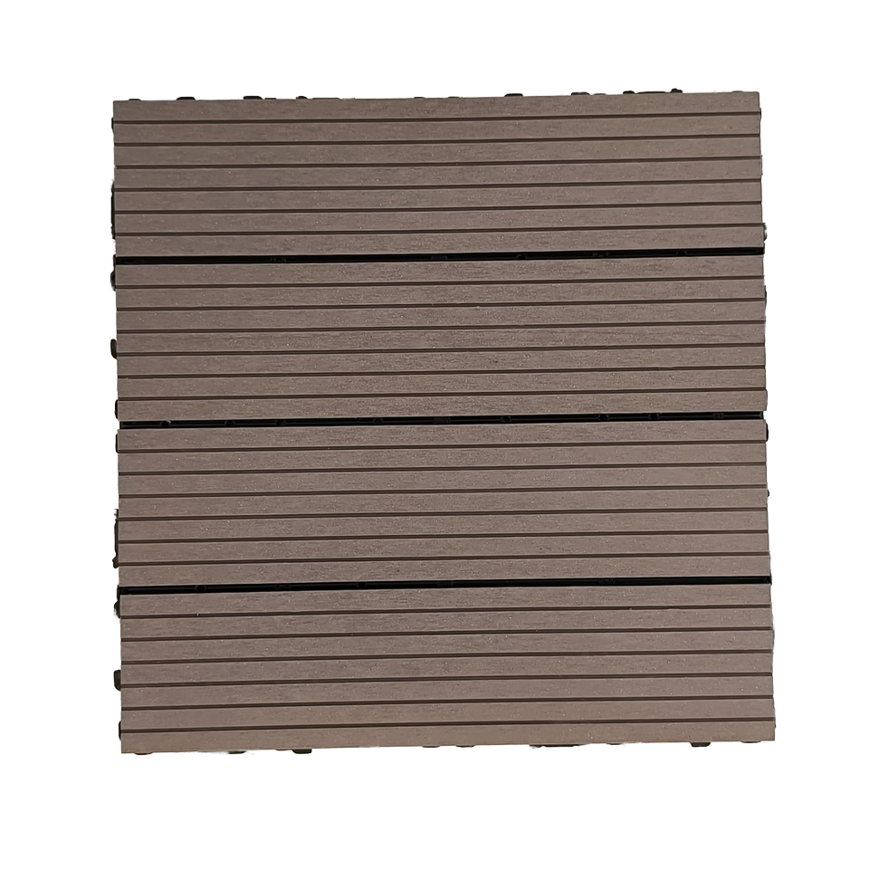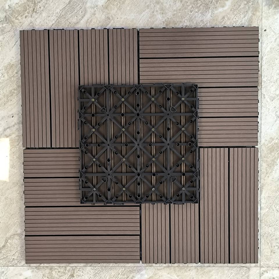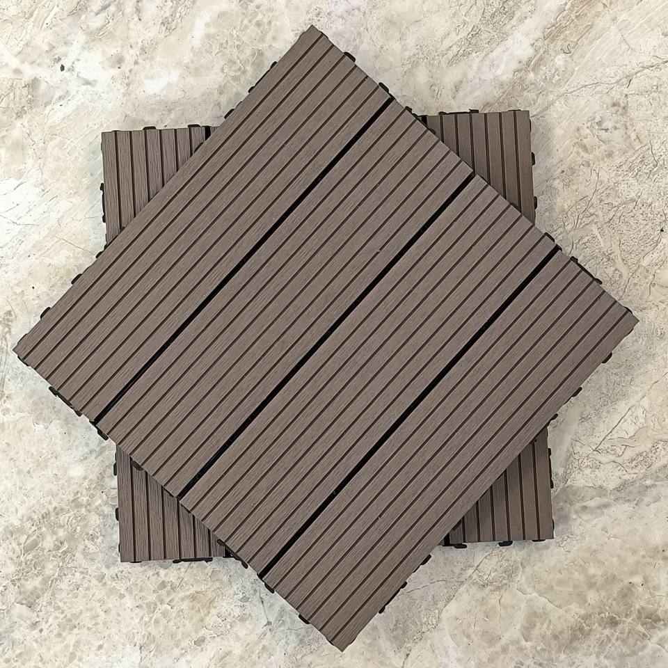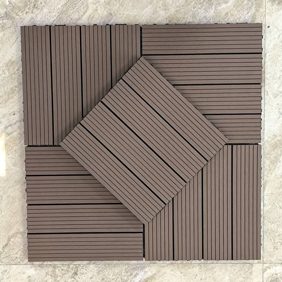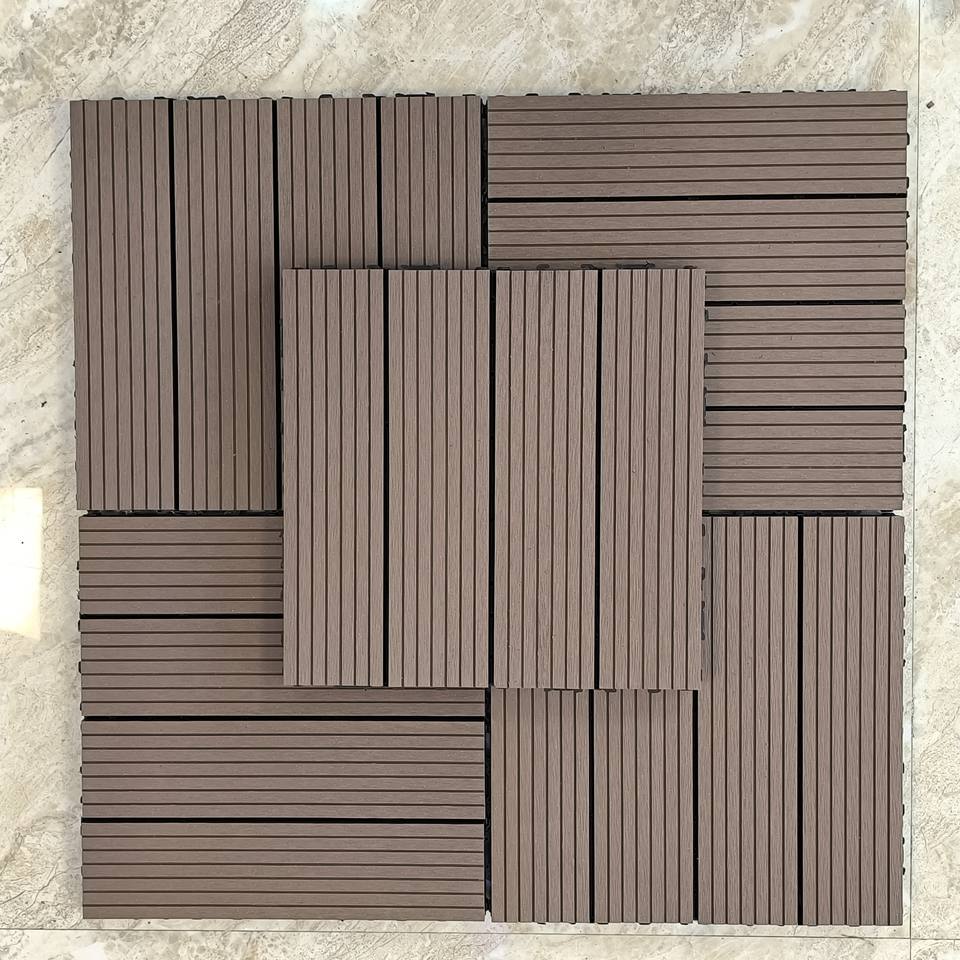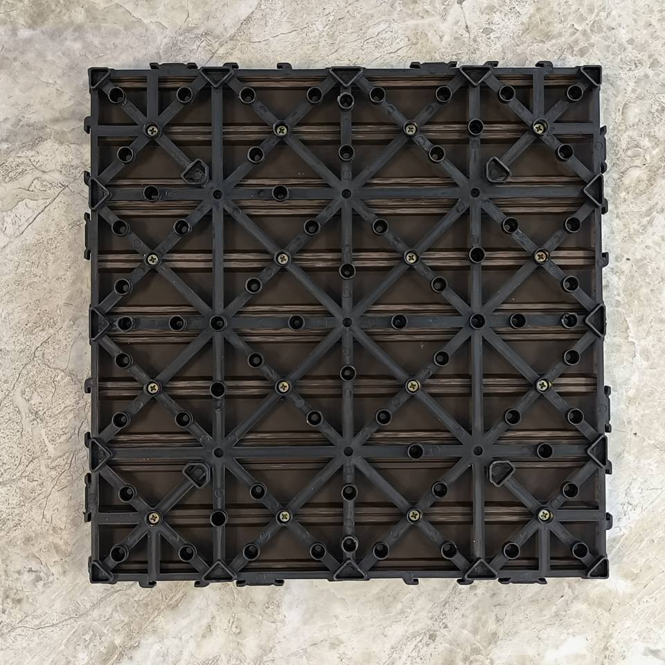 พื้นระเบียงสำเร็จรูป WPC ความหนาแน่นสูง สำหรับกลางแจ้ง ขนาด 300x300 มม. แบบประกบกันได้ ผิวด้าน ป้องกันสิ่งแวดล้อม ลายไม้ขัดเงา