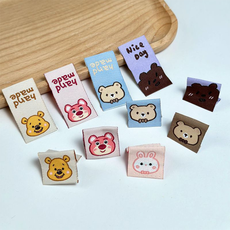 ป้ายผ้าทอที่มีความหนาแน่นสูงทำเองได้ป้ายชื่อโลโก้แบบรีดติดด้วยความร้อนเทคนิคการปัก