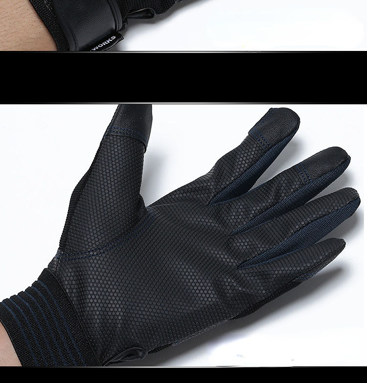ถุงมือกลไกหนังพรีเมี่ยมทนความร้อนป้องกันไฟฟ้าสถิตย์ป้องกันการสั่นสะเทือนปราศจากผงซิลิโคนออกแบบได้ตามต้องการ