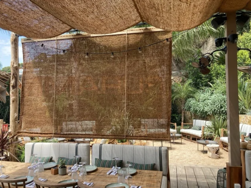 ม่านใยมะพร้าวที่มีความทนทานสูงจากเชือกมะพร้าวระดับพรีเมียมม่านบังแดดสำหรับคาเฟ่รีสอร์ทและสวน