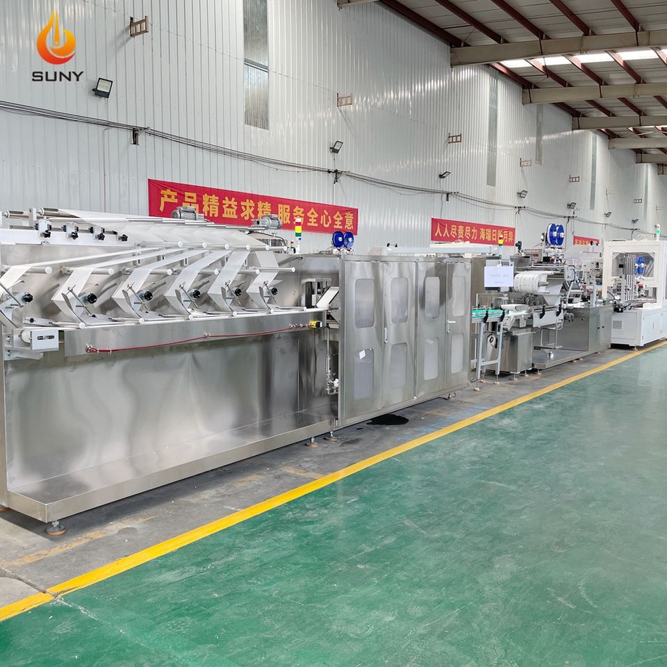 เครื่องบรรจุผ้าเช็ดทำความสะอาดแอลกอฮอล์ประสิทธิภาพสูง 30-120 ชิ้น/ครั้ง สายการผลิตทิชชู่เปียกอัตโนมัติเต็มรูปแบบ