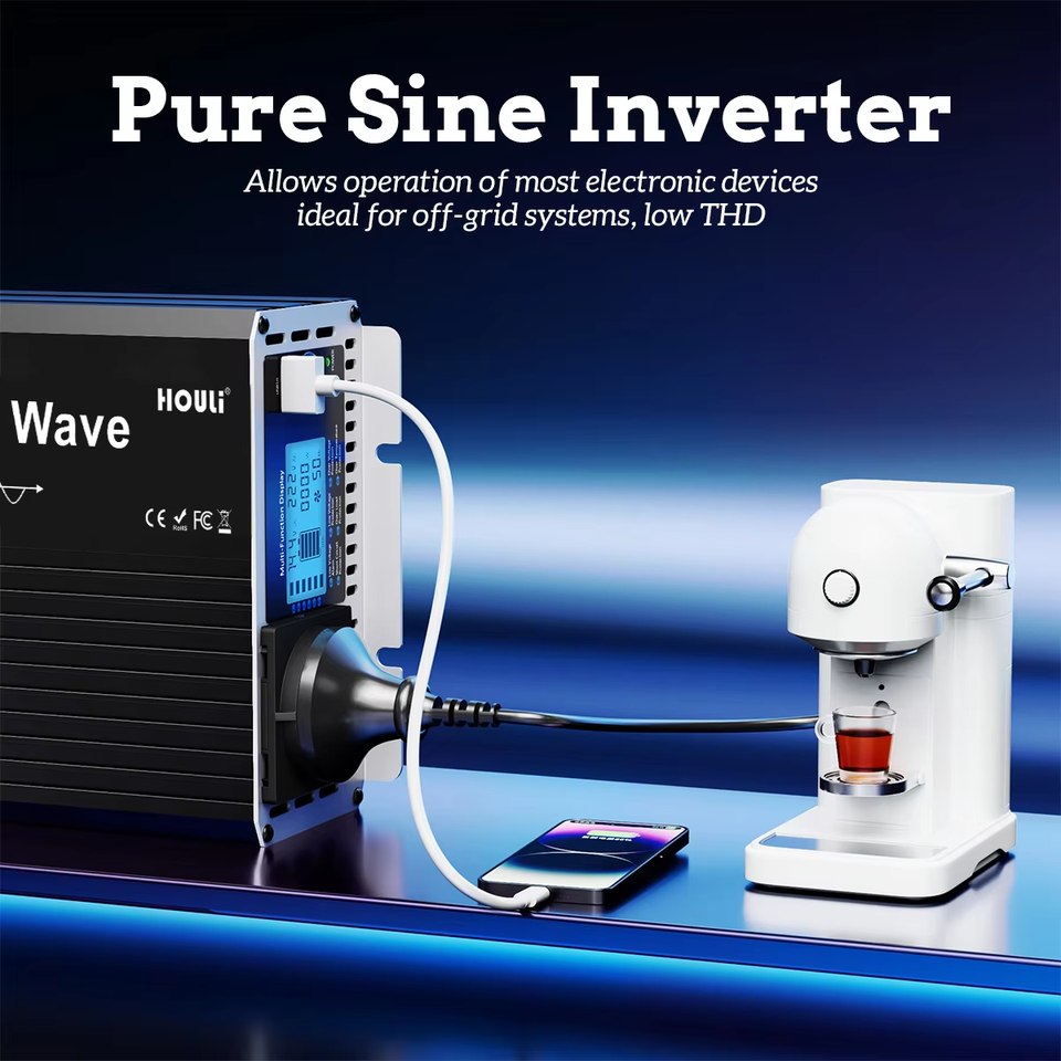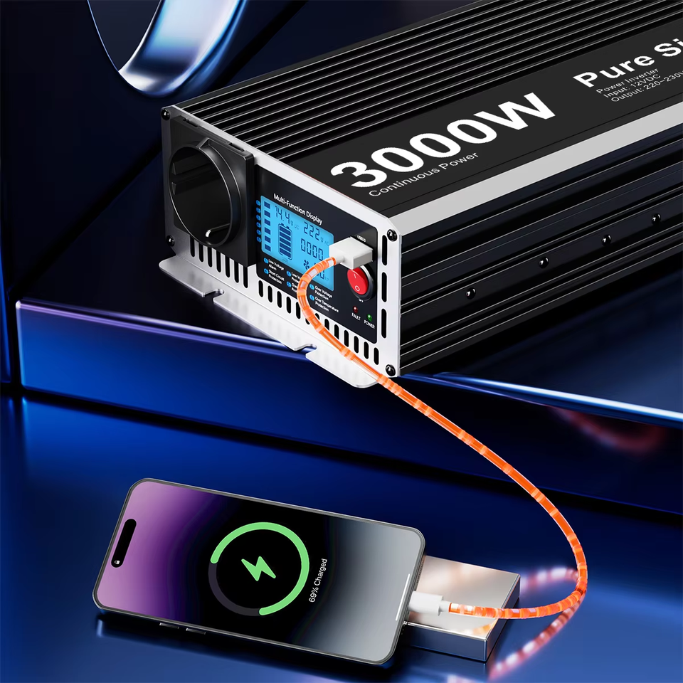 อินเวอร์เตอร์คลื่นไซน์บริสุทธิ์ประสิทธิภาพสูง 4000W 2000W DC 12V 24V เป็น AC 110V 220V สำหรับระบบพลังงานแสงอาทิตย์ รถยนต์ รถบ้าน และสำรองไฟบ้าน