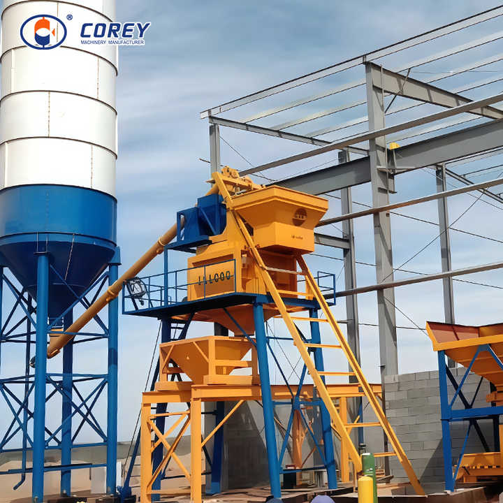 โรงงานผสมคอนกรีตแบบพกพาอัตโนมัติ ประสิทธิภาพสูง 50 ตร.ม./ชม. 60 ตร.ม./ชม. พร้อมระบบควบคุม PLC พร้อมปั๊มคอนกรีตขนาดเล็ก