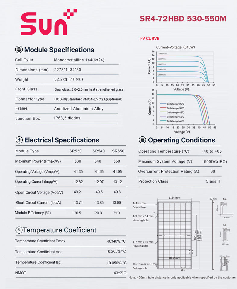 แผงโซลาร์เซลล์แบบสองหน้าชนิด N กำลังไฟ 545 วัตต์ แบบฮาล์ฟเซลล์ กระจกสองชั้น มาตรฐาน IP67 ประสิทธิภาพ 21.3% รับประกัน 30 ปี สำหรับตลาดยุโรปและสหรัฐอเมริกา