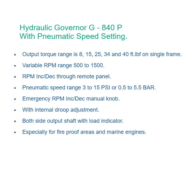 ตัวควบคุมไฮดรอลิก G - 840 Pรุ่นเครื่องยนต์