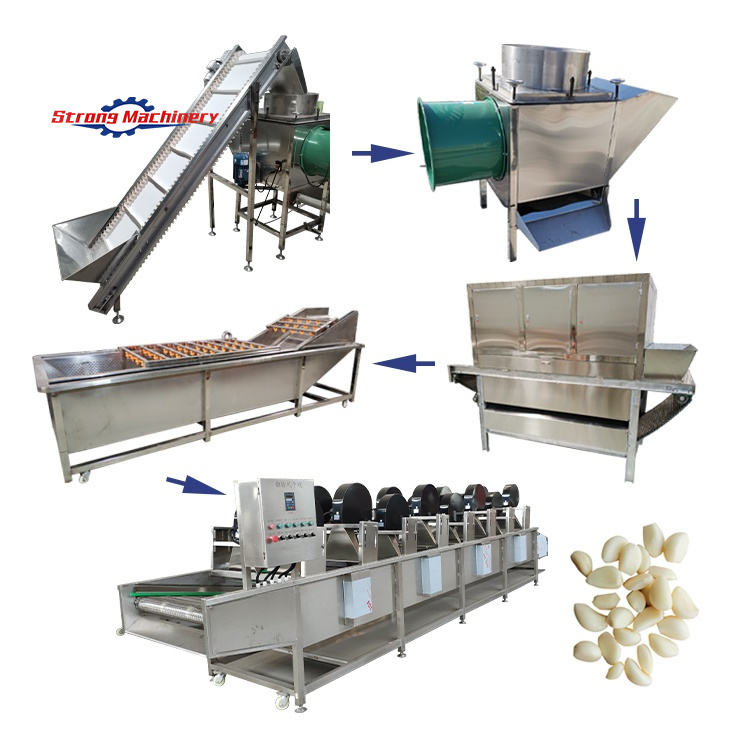 สายการผลิตกระเทียมอัตโนมัติประสิทธิภาพสูงรวมถึงเครื่องคัดแยกปอกเปลือกผักผลไม้