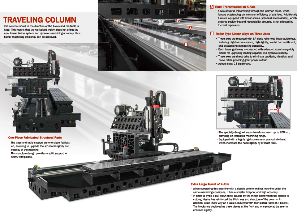 ศูนย์เครื่องจักรกลแบบคอลัมน์ประสิทธิภาพสูง โต๊ะทำงานชิ้นเดียว ศูนย์เครื่องจักรกลซีเอ็นซีแบบคอลัมน์เคลื่อนที่
