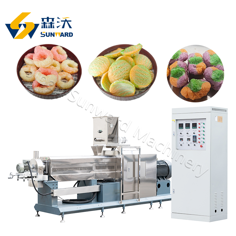 เครื่องผลิตแป้งพัฟข้าวโพดประสิทธิภาพสูง สายการผลิตอเนกประสงค์ เครื่องอัดรีดอาหารไฟฟ้า/แก๊ส แป้งข้าวโพด แป้งสาลี ข้าว