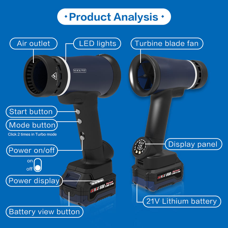 Lithium battery, Four wind speeds, Turbo mode, 3 types of air nozzlesเกรด