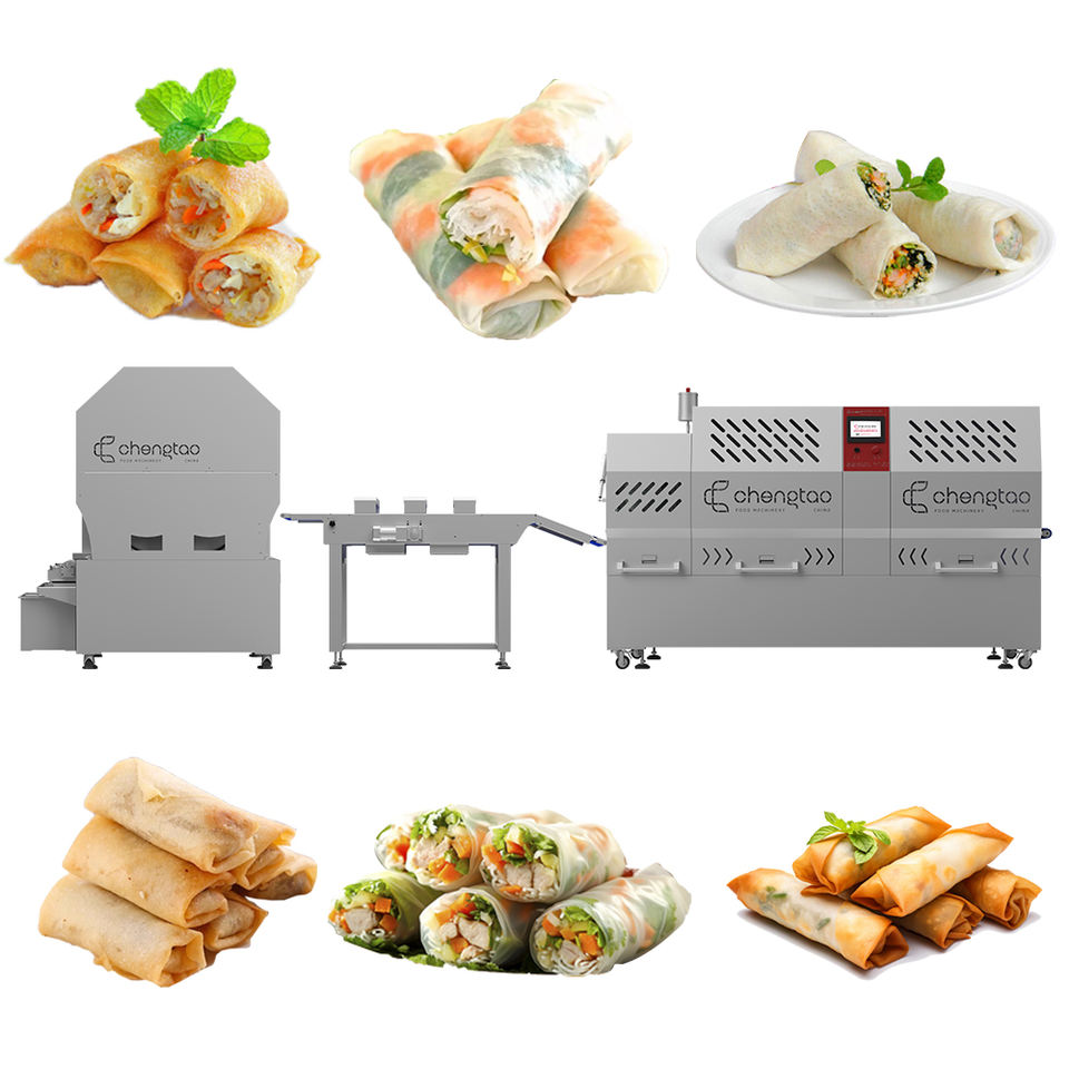 เครื่องผลิตแผ่นห่อปอเปี๊ยะแบบม้วนอัตโนมัติประสิทธิภาพสูง สายการผลิตสปริงโรล