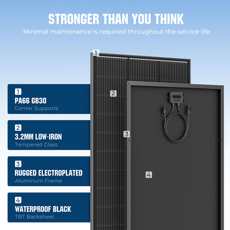 แผงโซลาร์เซลล์โมโนแบบฮาล์ฟเซลล์ประสิทธิภาพสูง 22% โมดูลพลังงานแสงอาทิตย์เซลล์พลังงานแสงอาทิตย์ทรงพลัง ขายดีที่สุด ปรับแต่งได้ พกพาสะดวกสำหรับการตั้งแคมป์กลางแจ้ง