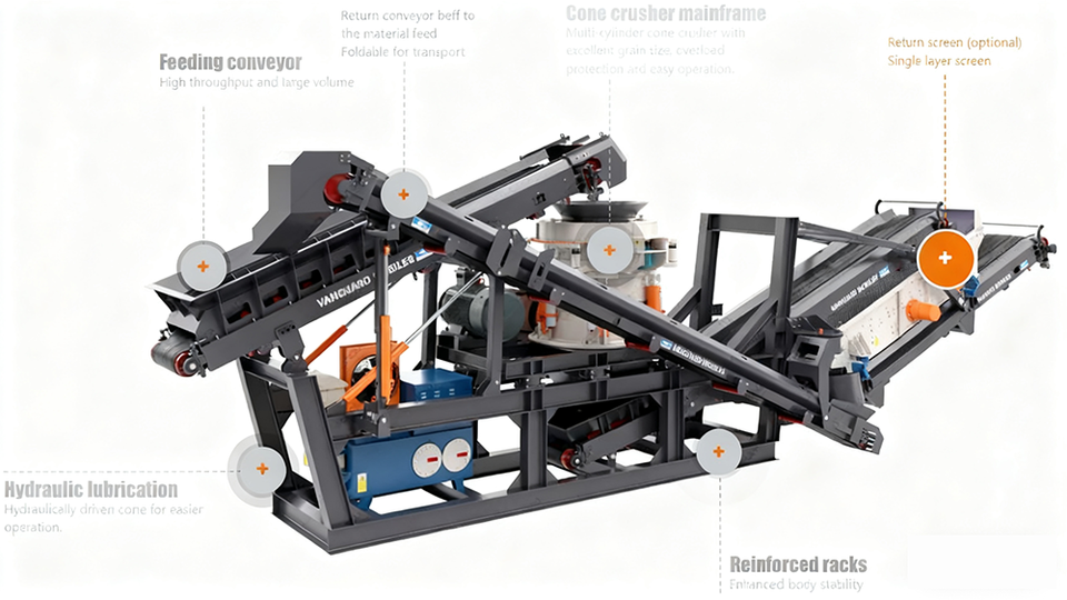 Core ส่วนประกอบ:ถังอาหาร, จานบด, ขากรรไกรคงที่, ขากรรไกรแกว่ง, เพลาประหลาด, แผ่นสลับ, ลิ่มปรับ, มอเตอร์ขับเคลื่อน, ล้อตุนกำลัง