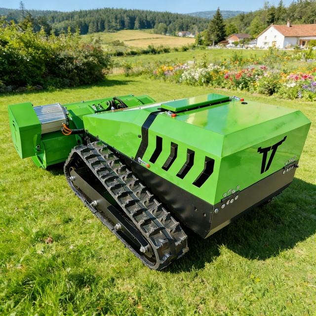 เครื่องตัดหญ้าและวัชพืชแบบขับเคลื่อนด้วยตัวเอง ควบคุมระยะไกล ประสิทธิภาพสูง ได้รับการรับรองมาตรฐาน CE แบบตีนตะขาบ 72V