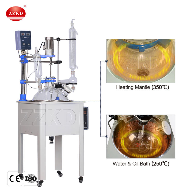 เครื่องปฏิกรณ์แก้วสำหรับห้องปฏิบัติการขนาด 50 ลิตร แบบตั้งโต๊ะ ผนังเดี่ยว สำหรับงานเคมี