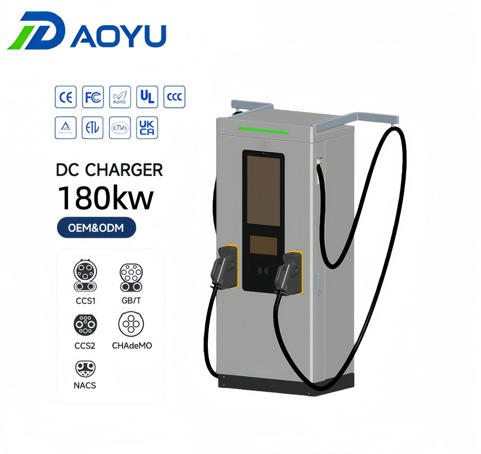 เครื่องชาร์จรถยนต์ไฟฟ้ากระแสตรงแบบเร็ว 180 กิโลวัตต์ 380 โวลต์ ได้รับการรับรองมาตรฐาน TUV ประสิทธิภาพสูง รองรับ CCS1/CCS2/GBT สำหรับใช้งานกลางแจ้งเชิงพาณิชย์ ปลอดภัย ใช้งานได้ทั่วโลก