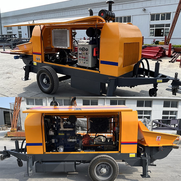 ปั๊มคอนกรีตดีเซลขนาดเล็กประสิทธิภาพสูง ปั๊มคอนกรีตแบบลากจูงดีเซล พร้อมรีโมท ปั๊มคอนกรีต เครื่องจักรก่อสร้าง