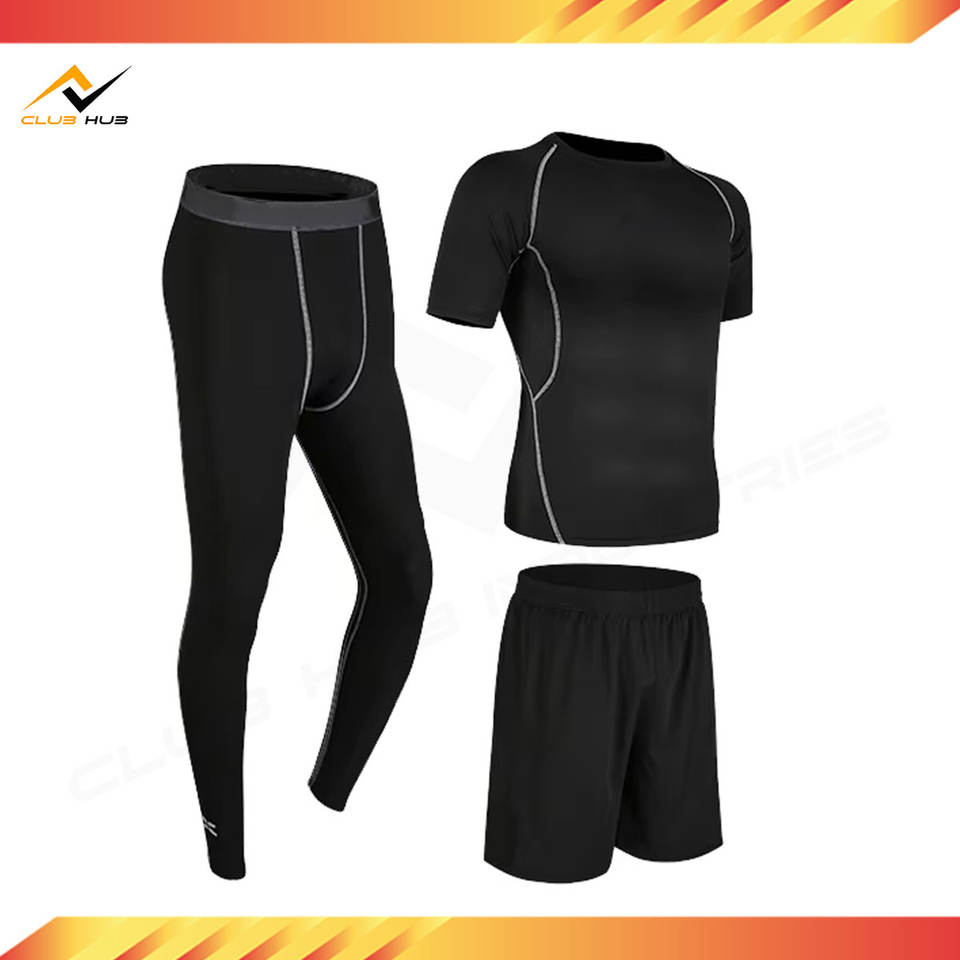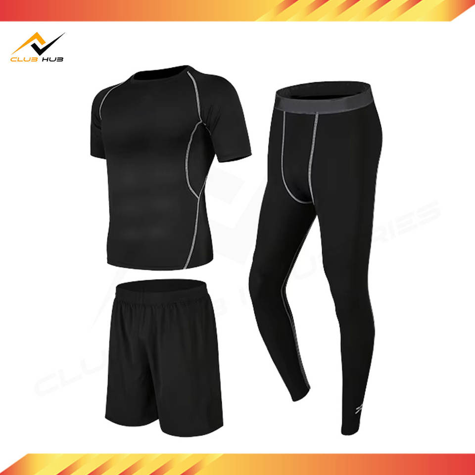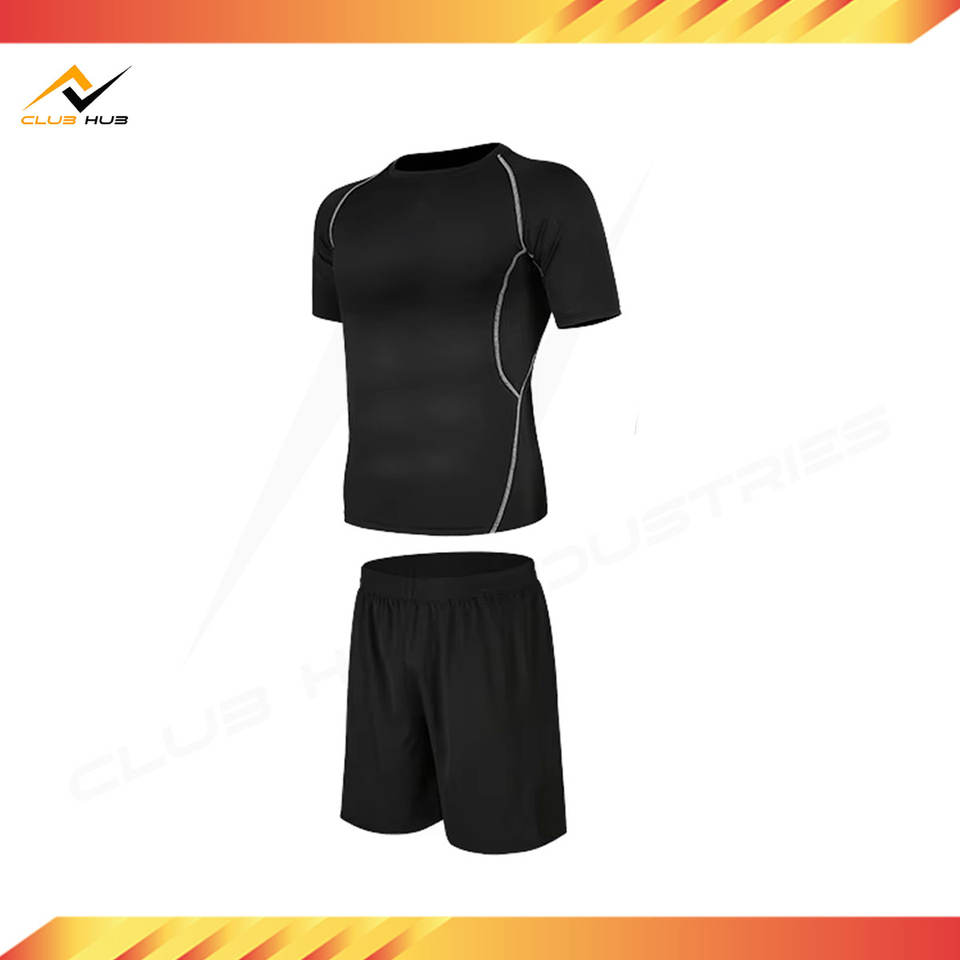 ชุดฟิตเนสผู้ชายยืดหยุ่นสูง เสื้อยืดซับเหงื่อ กางเกงวิ่งเนื้อนุ่ม ระบายอากาศได้ดี ชุดกีฬาฤดูร้อน ผลิตในปากีสถาน