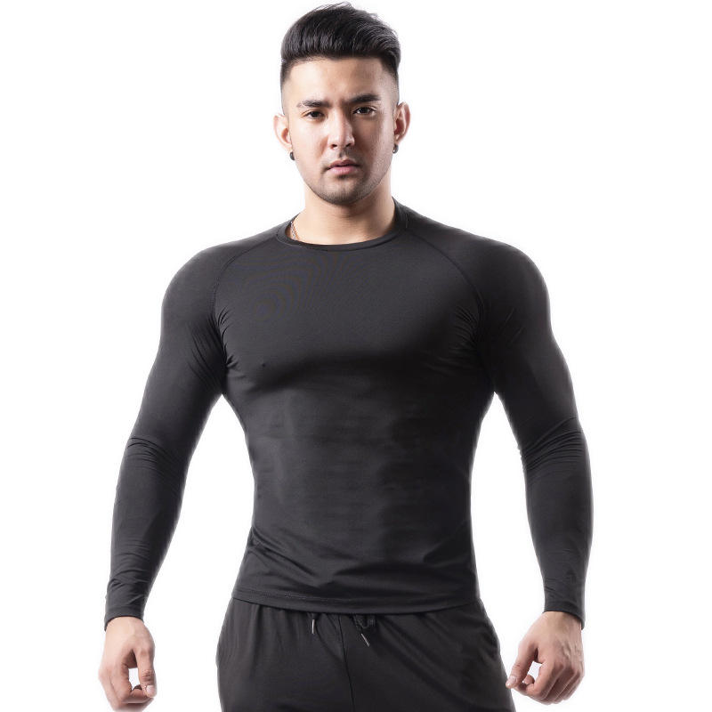 High Elastic Quick Dry Custom logo Slim Fit Solid Round Collar Tight Sport Gym Wear Men Long Sleeve FitnessT-shirt for men