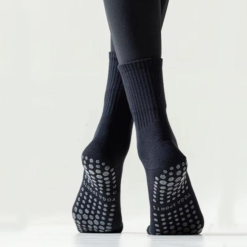 ถุงเท้าพิลาทิสแบบถักยืดหยุ่นสูง พร้อมโลโก้สั่งทำพิเศษ ผ้าเทอร์รี่หนานุ่มสำหรับฤดูหนาว ปักลายสำหรับฟิตเนส โยคะ ความยาวระดับข้อเท้า พร้อมโลโก้ที่ขอบถุงเท้า