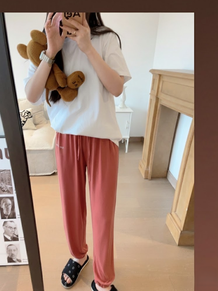 กางเกงนอนสปริงสำหรับผู้หญิง ยืดหยุ่นสูง นุ่ม ระบายอากาศได้ดี บางเบา สไตล์มินิมอล ผ้าคิวโปร