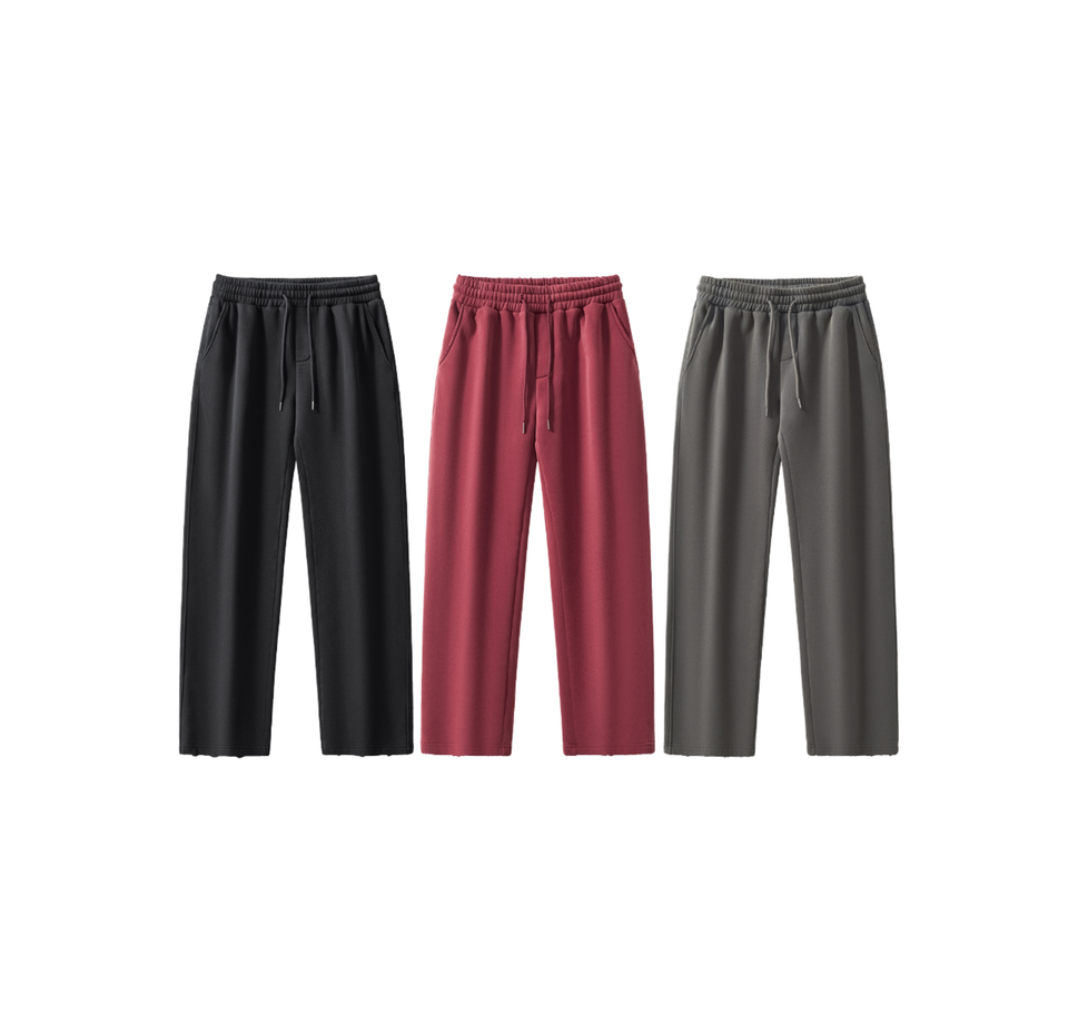 High End 100% Cotton Mid Eco-Friendly Breathable Flat Front Drawstring Closure Men's Sports Pant Casual Blank Straight Grey