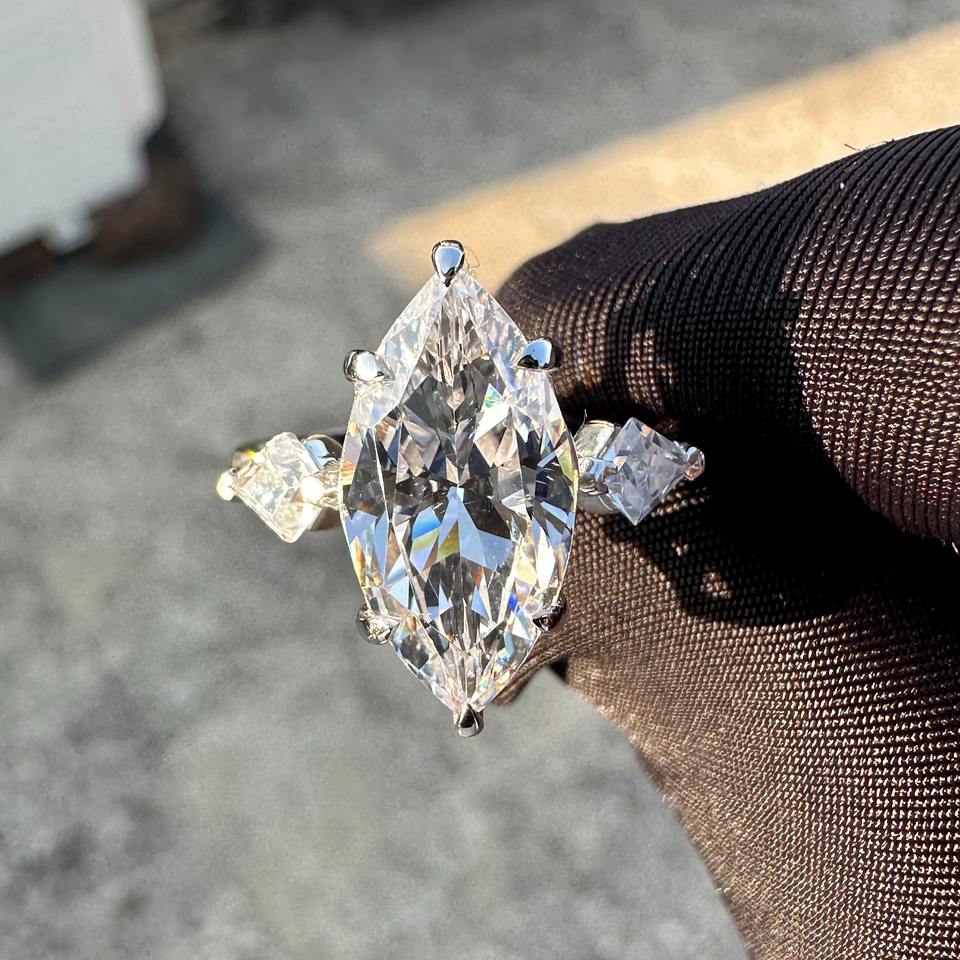 High-end 10K โกลด์ซิลเวอร์สําหรับปลูกเพชรแหวนหมั้น1กะรัตมาคีส์ VVS2ตัดอีจีไอจีได้รับการรับรองขายส่ง