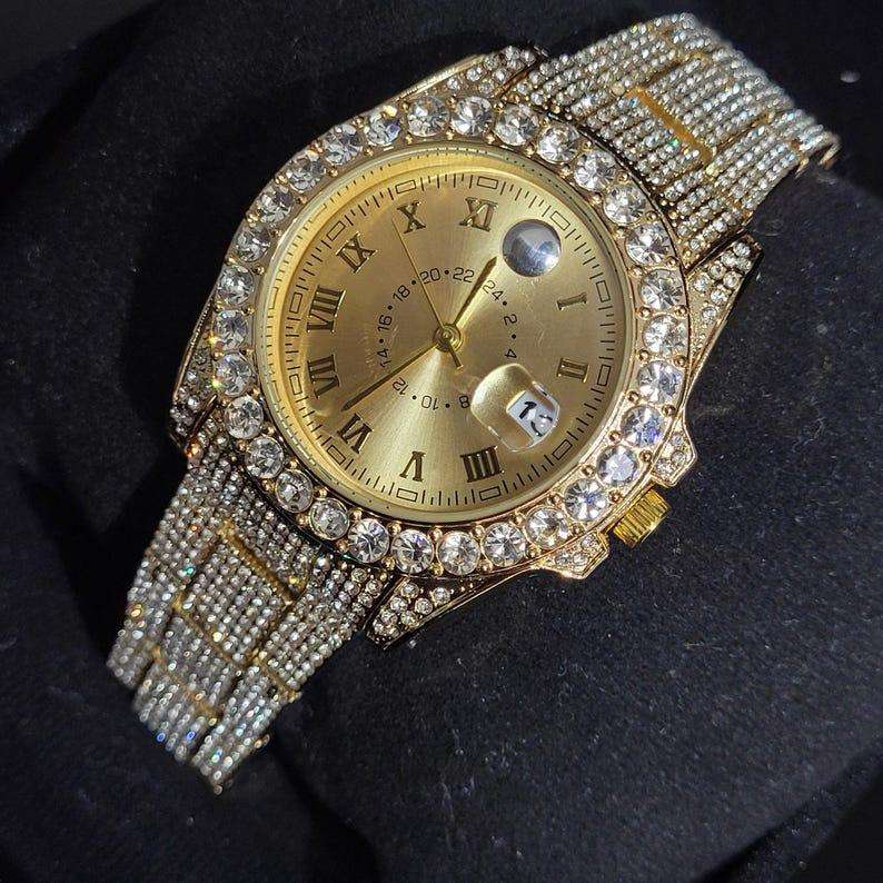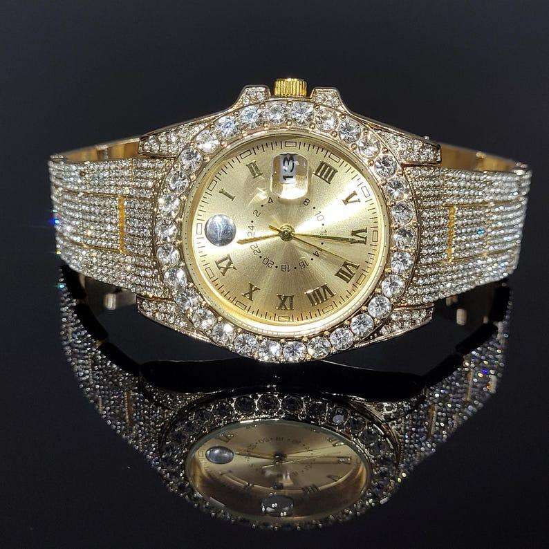 นาฬิกาเพชรโมอิสสีทองระดับไฮเอนด์20มม. นาฬิกาเคลื่อนไหวอัตโนมัติจอแสดงผลตัวเลขโรมันคุณภาพสูงสินค้ามาใหม่