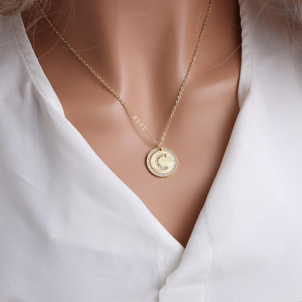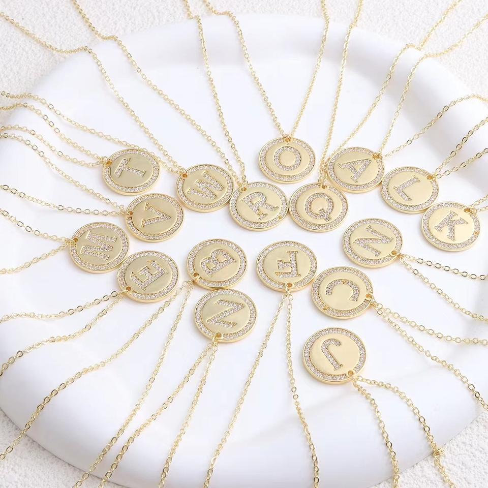 สร้อยคอจี้ตัวอักษรภาษาอังกฤษ 26 ตัว ดีไซน์หรูหรา สไตล์ยุโรปและอเมริกา ประดับเพชรซิคอนทรงกลม แบรนด์แฟชั่น