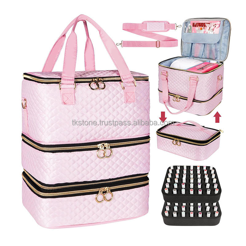 กระเป๋าซิปเก็บอุปกรณ์ทำเล็บ3ชั้นแบบพกพาระดับไฮเอนด์ความจุขนาดใหญ่3ชั้นโพลีเอสเตอร์
