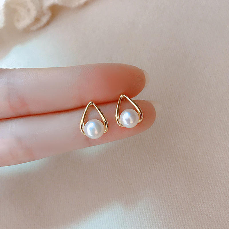 ต่างหูมุกน้ำจืดธรรมชาติ 6-7 มม. ดีไซน์เรขาคณิต สไตล์หรูหรา ทันสมัย แบบห้อย