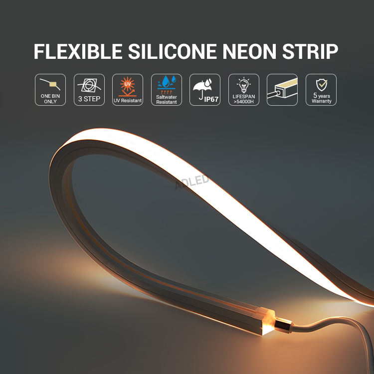 แถบไฟนีออนซิลิโคน95 CRI ระดับไฮเอนด์1010มม. 24โวลต์10*10มม. มีความยืดหยุ่นใช้งานกลางแจ้งพร้อมคะแนน IP67สำหรับโรงแรม