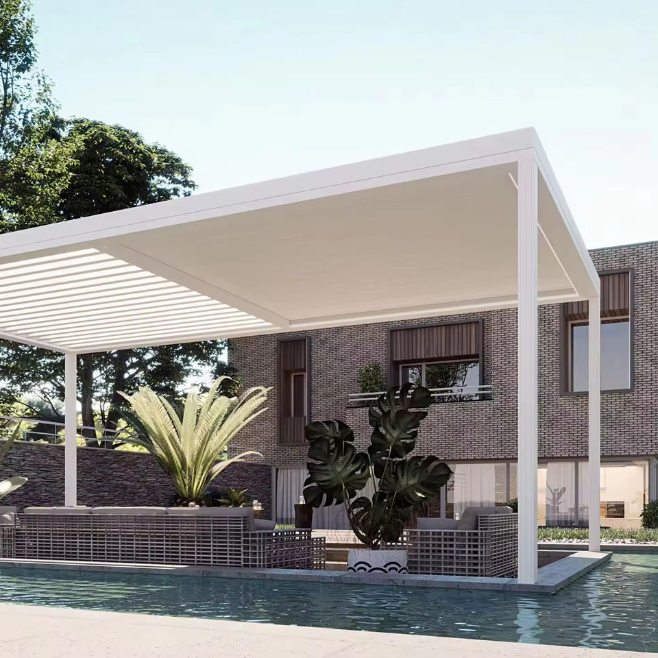 High-End Bioclimatic Pergola for Outdoor Spaces with Adjustable Louvered Roof Panels