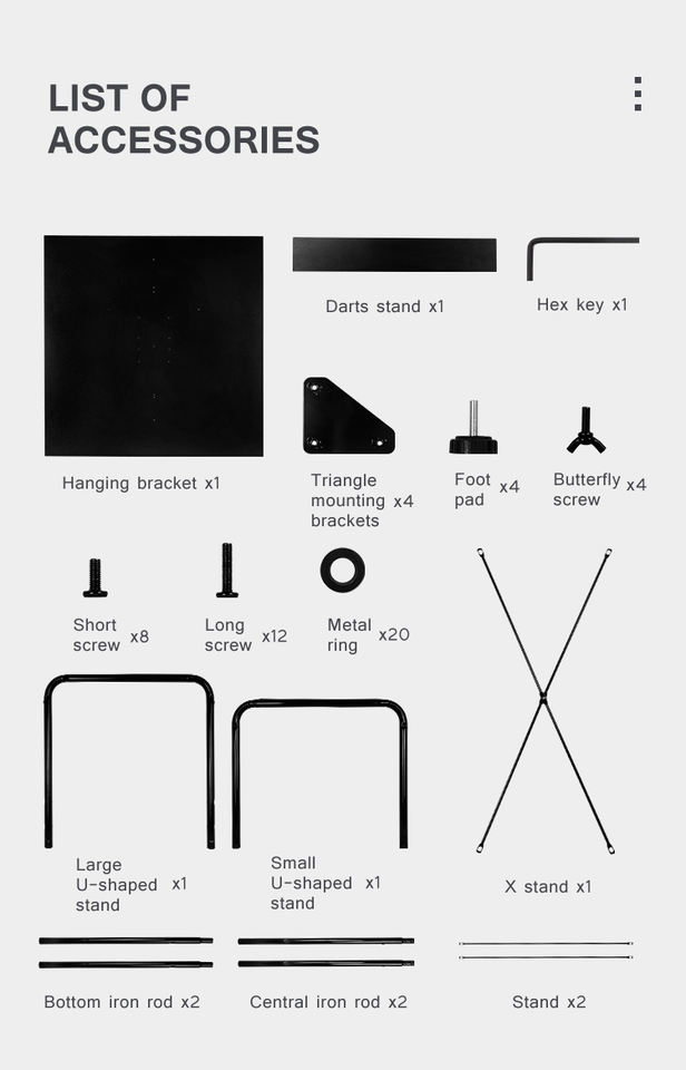 ขาตั้งกระดานปาเป้าสีดำไฮเอนด์พร้อมลูกดอกและอุปกรณ์เสริมพรีเมี่ยม