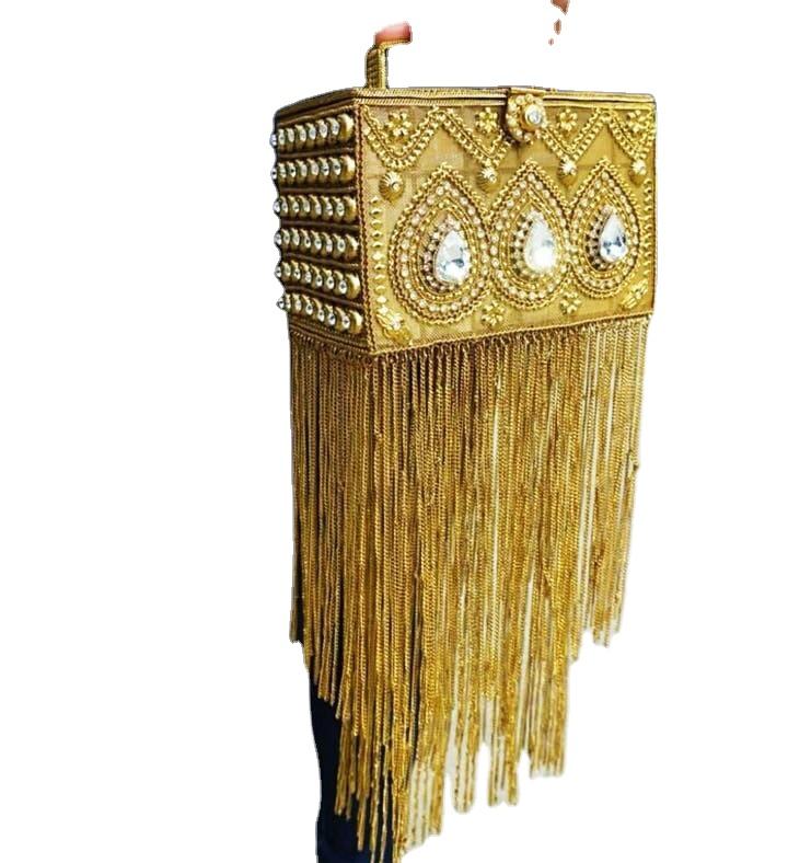กระเป๋าคลัทช์สำหรับงานแต่งงานแบบคลาสสิกกระเป๋า potli โลหะแฟชั่นและพกพาได้แรงบันดาลใจจากสไตล์โบฮีเมียนและระดับชาติ