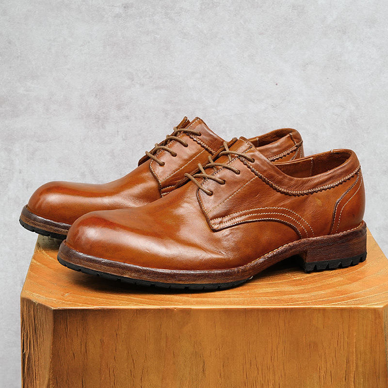 รองเท้าธุรกิจระดับไฮเอนด์ - หนังแท้นุ่มสบาย สไตล์ลำลองและเป็นทางการ แบบอ็อกซ์ฟอร์ด พื้นเรียบ กันลื่น มีเชือกผูก รองเท้าผู้ชายแฟชั่น