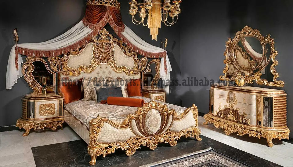 ชุดเฟอร์นิเจอร์ห้องนอนไม้สักสไตล์มหาราชา ชุดเฟอร์นิเจอร์ห้องนอนขนาดสั่งทำพิเศษจากสหราชอาณาจักร DSTEXPORTS เตียงแกะสลักด้วยมือพร้อมโต๊ะข้างเตียง